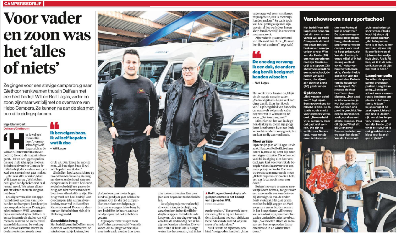 Caravan Centrum Lagas in Dalfsen heeft deze maand de activiteiten van Hebo Campers uit Giethoorn overgenomen