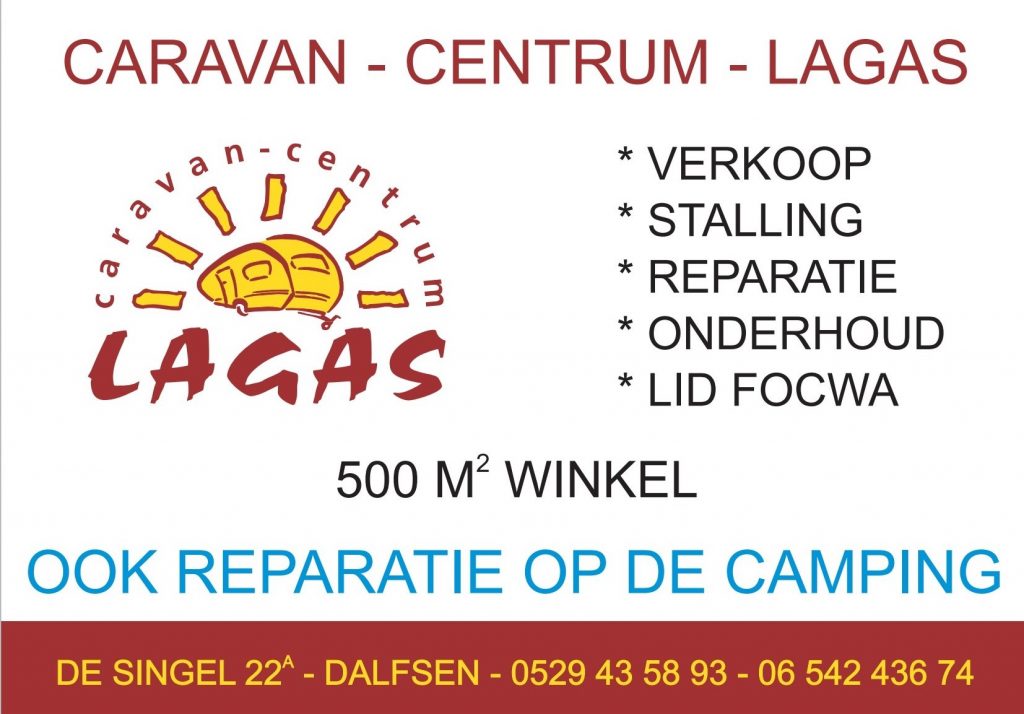Met zo’n 150 plekken voor zowel caravans als campers biedt Caravan Centrum Lagas ruim tweeduizend vierkante meter aan overdekte stallingsruimte. Daarnaast is Lagas een BOVAG erkend onderhoud- en schadeherstelbedrijf, met erkende keurmeesters en vakbekwame monteurs. Het bedrijf is dealer van een groot aantal merken, zoals als Reich, Thule, HPC Hydraulics (level- en stabilisatiesystemen) en sinds kort ook BearLock (mechanische beveiligingssystemen voor campers), en ondersteunend servicepunt voor Thetford. Het maakt Lagas tot een specialist in onderhoud en keuringen, schadeherstel, montage, aanpassingen en het afleverklaar maken van nieuwe caravans en campers.
